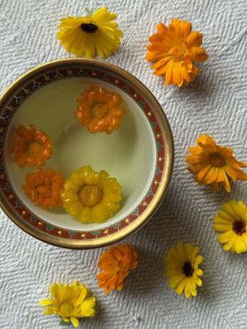 Nach all dem Sammeln und Schreiben gönne ich mir erst einmal eine Tasse Ringelblumentee – mild und mit diesem feinen Duft nach Sommer.